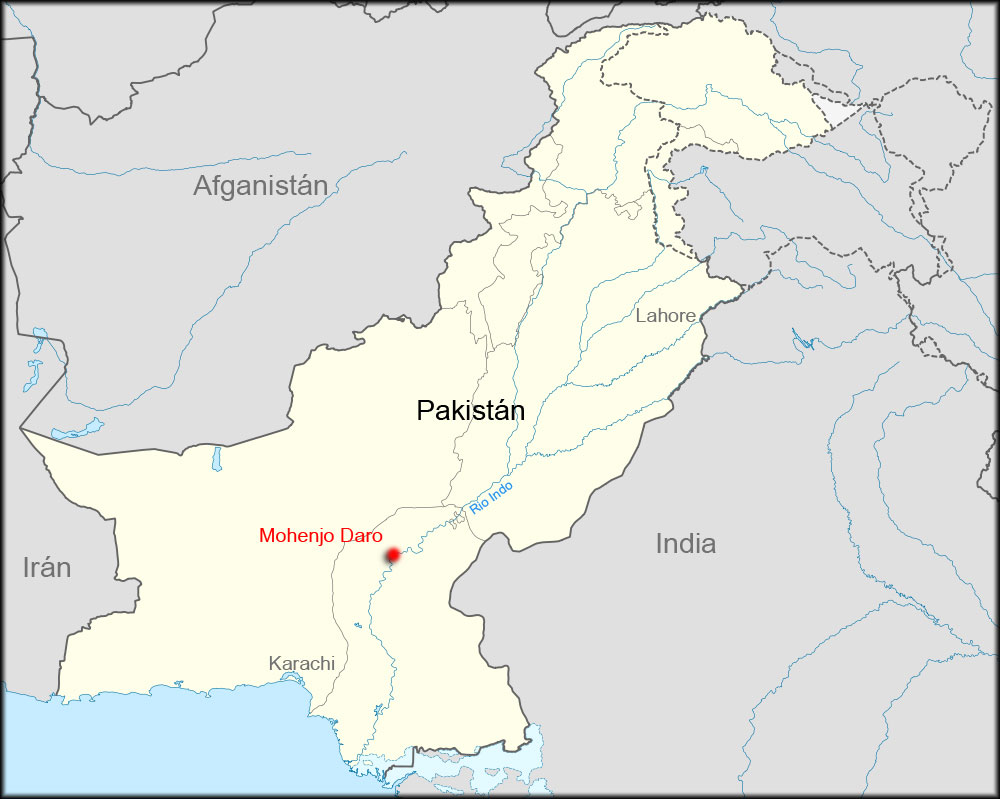 Mohenjo-Daro (sindhi: موئن جو دڙو/मोइन जो दड़ो, IPA: [moˑin ʥoˑ d̪əɽoˑ]) fue una ciudad de la antigua cultura del valle del Indo. Sus ruinas se encuentran en territorio del actual Pakistán. Se desconoce su nombre antiguo. El actual nombre Mohenjo Daro significa literalmente "montículo de la muerte". Fue habitada durante el tercer milenio antes de nuestra era (entre el 2600 a. C. y el 1800 a. C.) a orillas del río Indo. Fue uno de los primeros y más importantes asentamientos urbanos del mundo, existente al mismo tiempo que las civilizaciones del Antiguo Egipto, Mesopotamia y Creta. Probablemente un cambio en el curso del río provocó el abandono de la ciudad. |