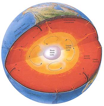 El hierro fundido mas pesado se fué al fondo a conformar el núcleo, mientras los elementos mas livianos gradualmente llegaron a la superfície. Los mas livianos de todos formaron la corteza en forma de una melaza o mucosidad en la superficie. También hubo desprendimiento de gases, moléculas volátiles como agua, metano, amoniaco, hidrógeno, nitrógeno y dióxido de carbono. Una atmósfera inicial de vapor se formó con el agua de cometas y de minerales hidratados. Lluvia cayó para formar océanos hace 4.3 millones de años. Una vez que los planetesimales desaparecieron el bombardeo planetario también, entonces una corteza dura y rocosa se formó en la Tierra. Esta es la época de las rocas mas antiguas en la Tierra y la Luna. Agua en la atmósfera se condensó en los océanos y la proto-vida se formó a partir del caldo primordial molecular orgánico existente en los océanos, en el limo o rocas dentro de la corteza. |