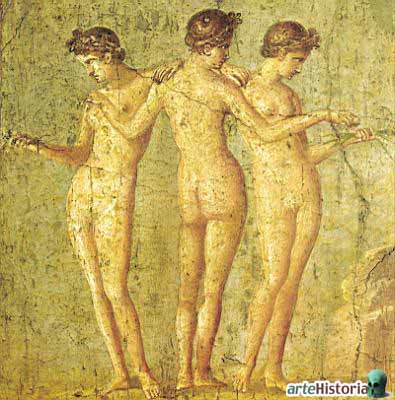 En la pintura: la representación de las Tres Gracias ha sido amplia y varíada, distinguiéndose mucho la visión de las tres mujeres de un pintor a otro. Pero el arquetipo vino determinado la representación realizada en el Duomo di Siena, que viene a ser similar a un fresco hayado en Pompeya, que data del siglo I. |