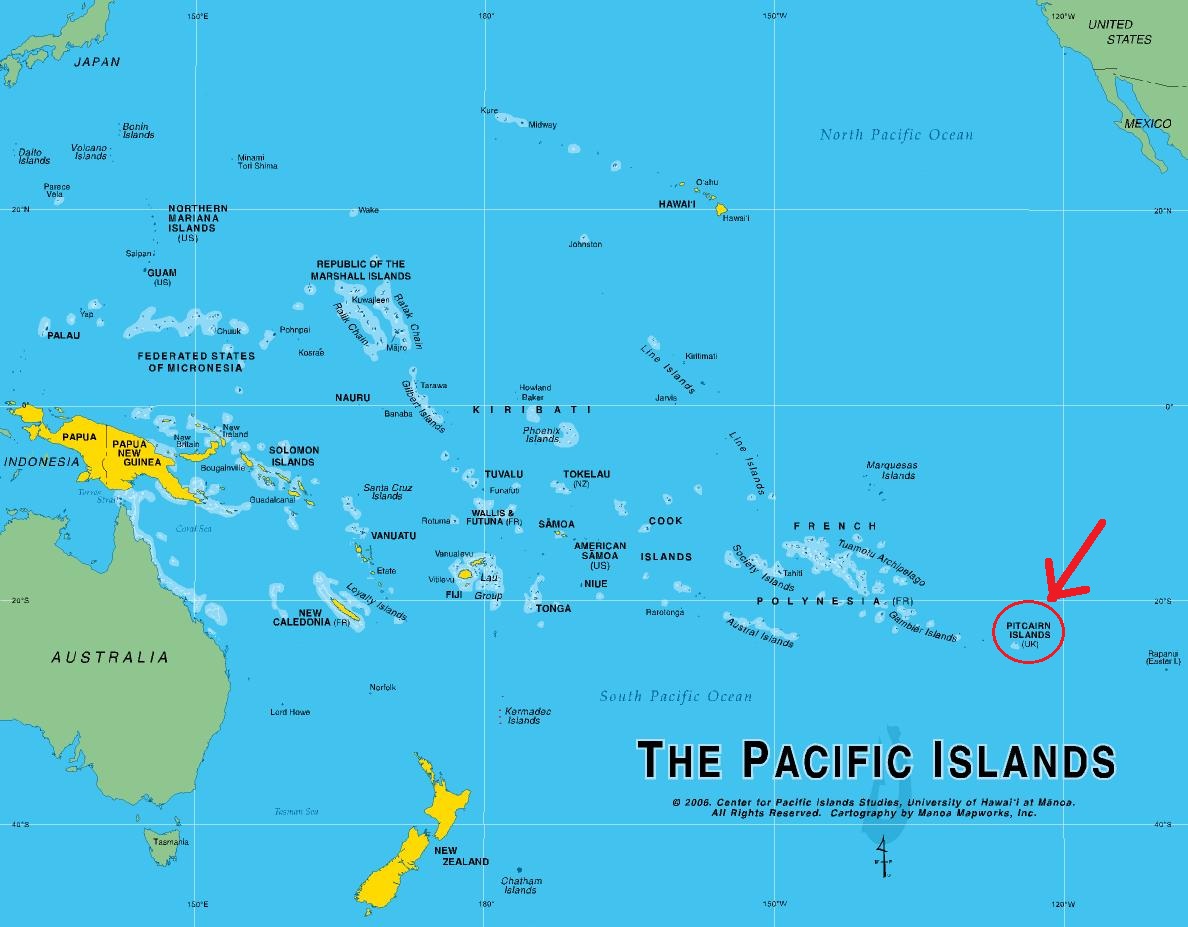 Islas Pitcairn Es la jurisdicción menos poblada del mundo: sólo viven allí 46 personas, de nueve familias. Forman un archipiélago en la Polinesia en Oceanía. Los restos del naufragio del HMS Bounty aún son visibles en una de las islas inhabitadas del archipiélago, sin duda un lugar lleno de magia y misticismo. Sus habitantes hablan una mezcla de inglés y tahitiano conocido como Pitcairnés. |